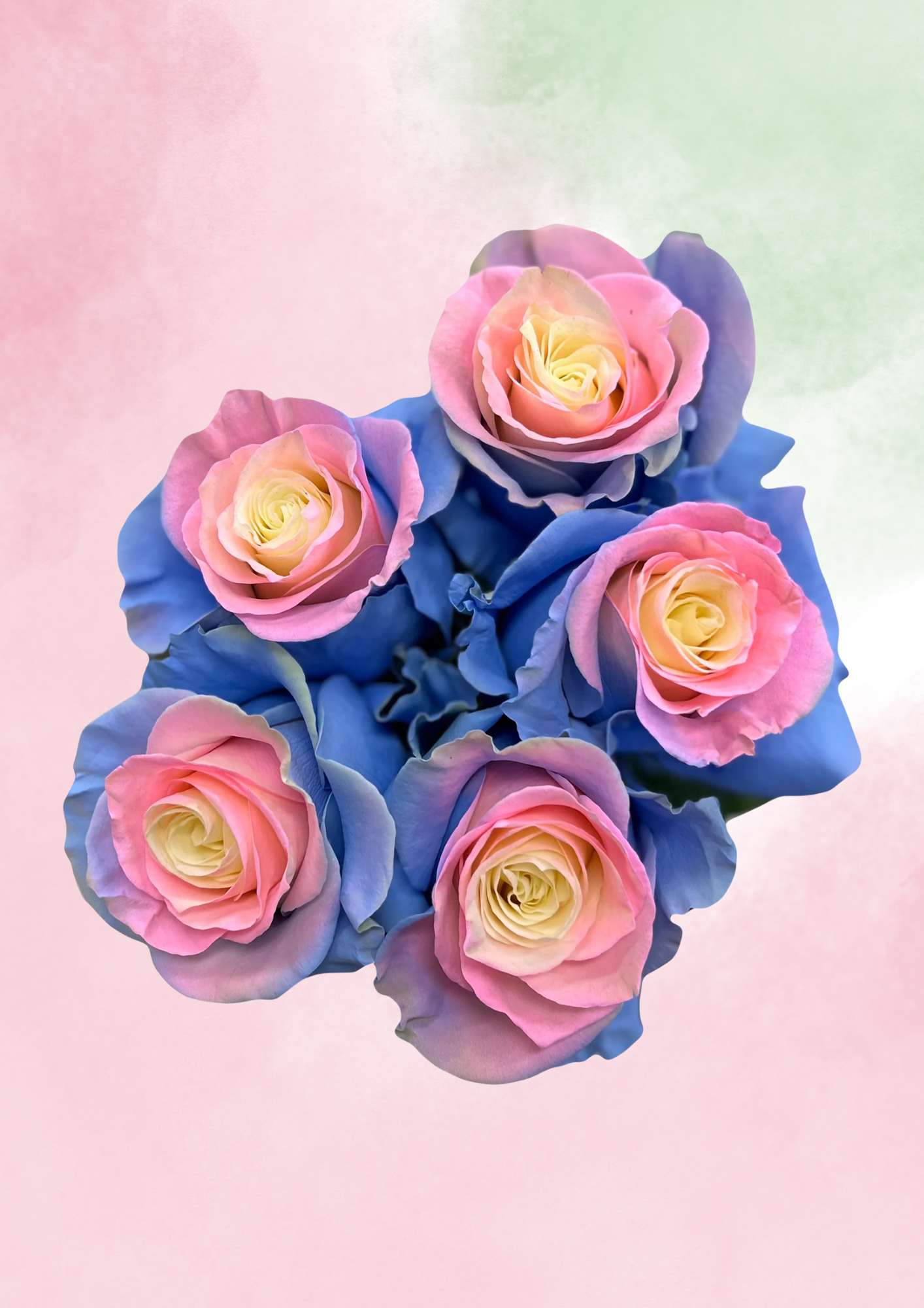 Blush pink and sapphire blue petals collide in a fairytale bloom—glam, dreamy, and royally unforgettable.